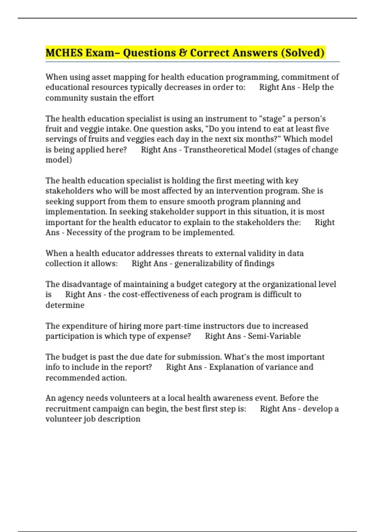 health ed specialist must develop the budget during the Right Ans -