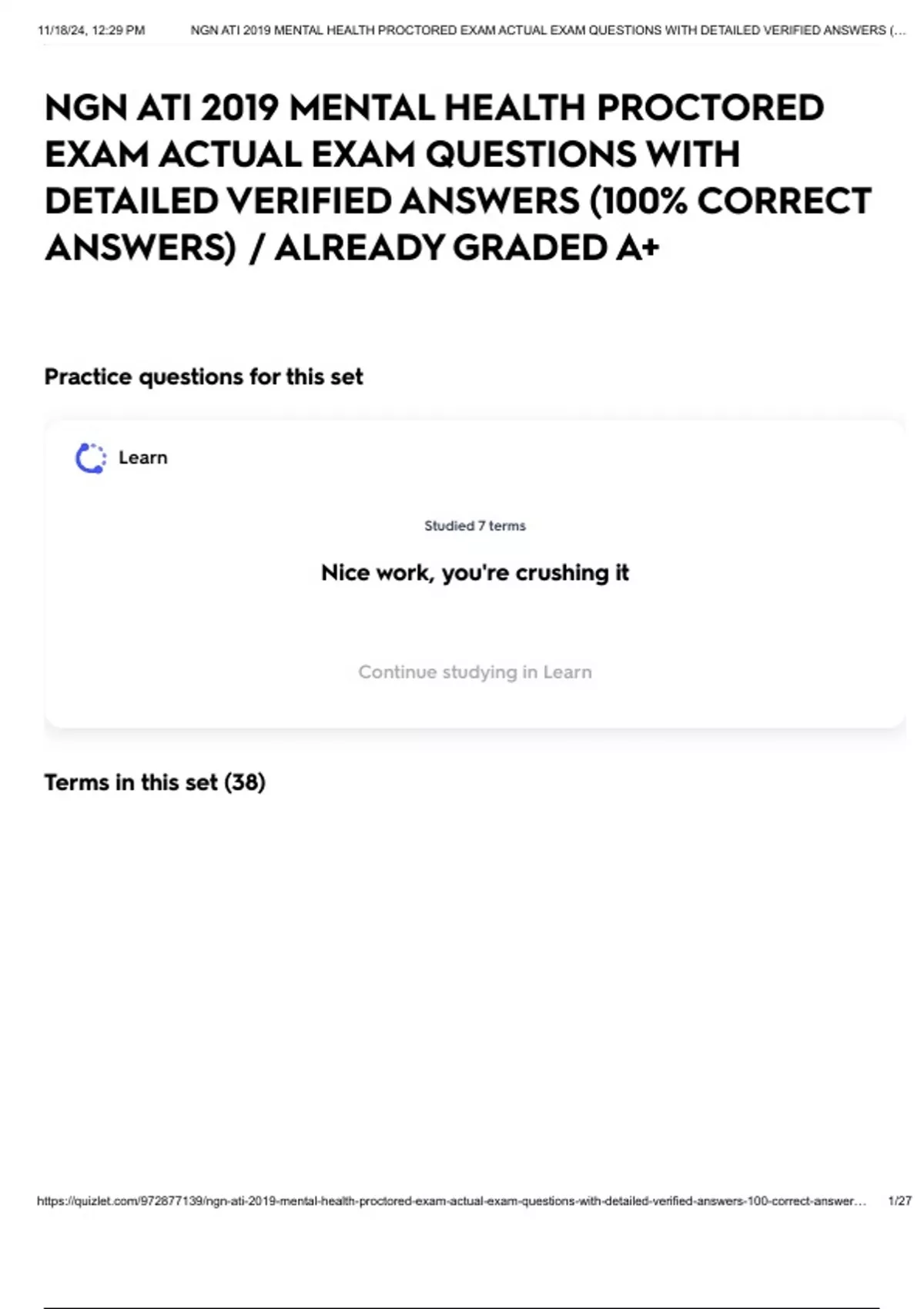 , 11/18/24, 12:29 PM NGN ATI 2019 MENTAL HEALTH PROCTORED EXAM ACTUAL EXAM QUESTIONS WITH DETAILED VERIFIED ANSWERS (…
