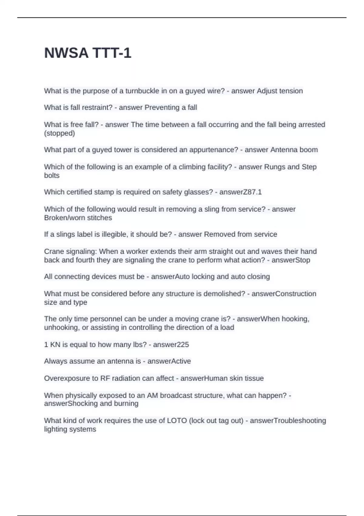 NWSA TTT-1 QUESTIONS AND ANSWERS GRADED A+