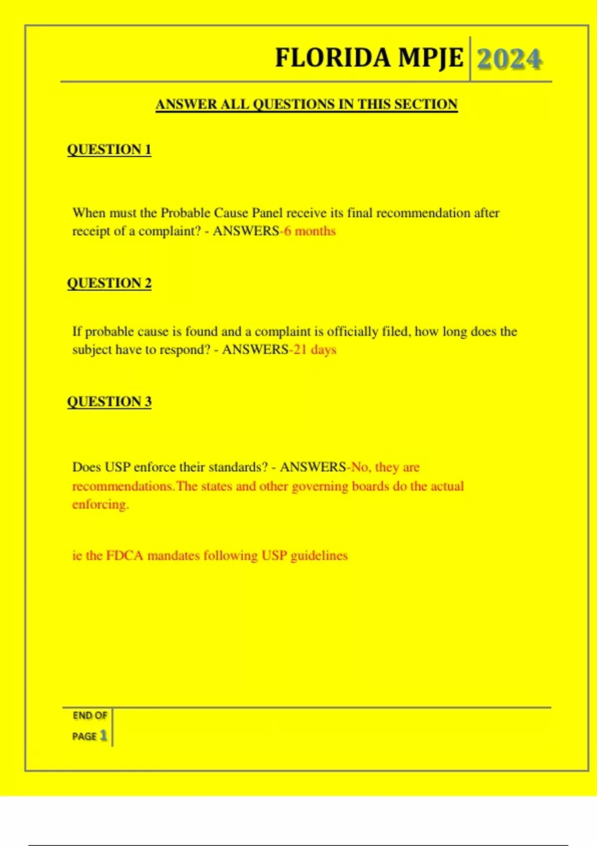 FLORIDA MPJE QUESTIONS AND ANSWERS 2024