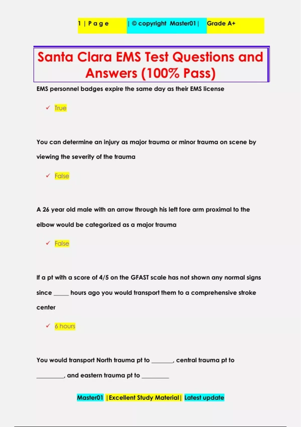 Santa Clara EMS Test Questions and Answers (100% Pass)