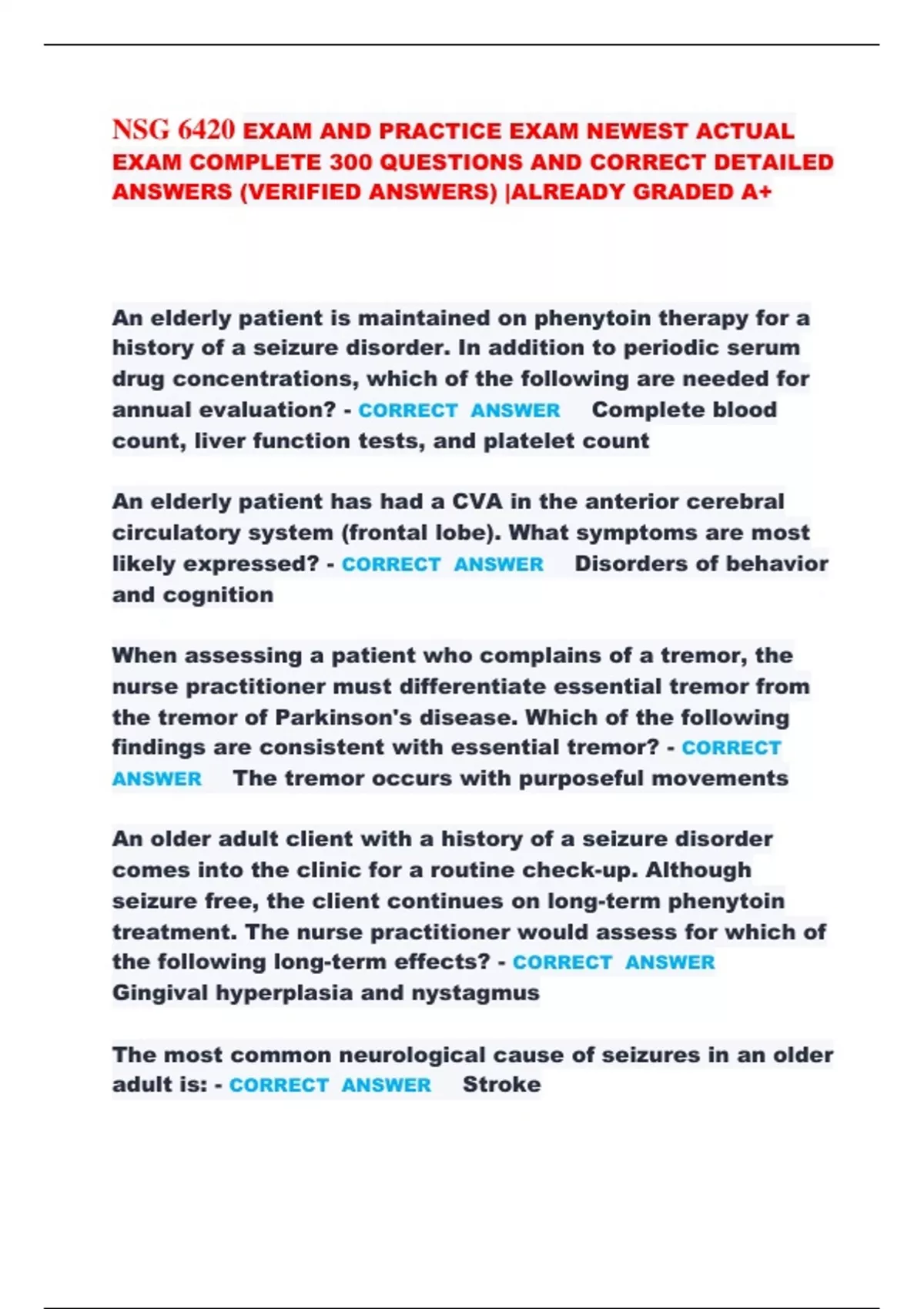 NSG 6420 EXAM AND PRACTICE EXAM NEWEST ACTUAL EXAM COMPLETE 300 QUESTIONS AND CORRECT DETAILED ANSWERS (VERIFIED ANSWERS) |ALREADY GRADED A+