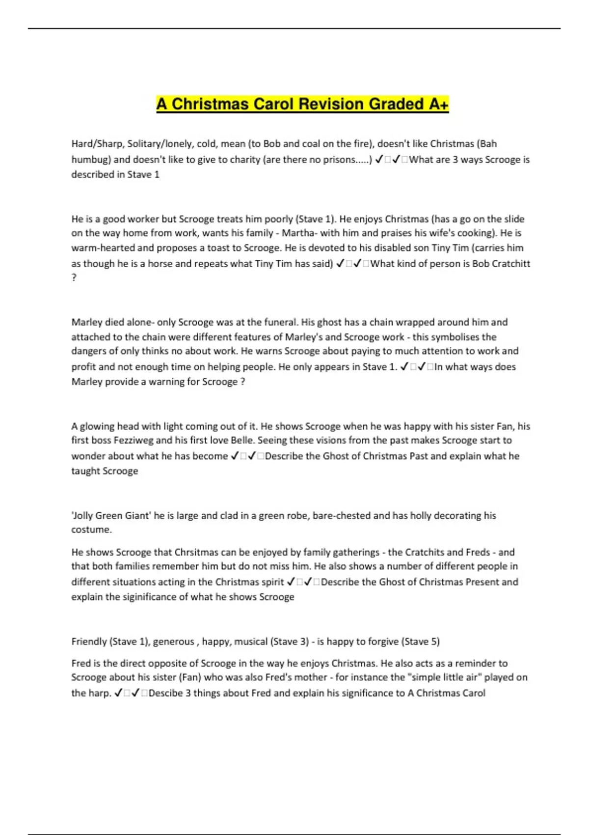 A Christmas Carol Revision Graded A+