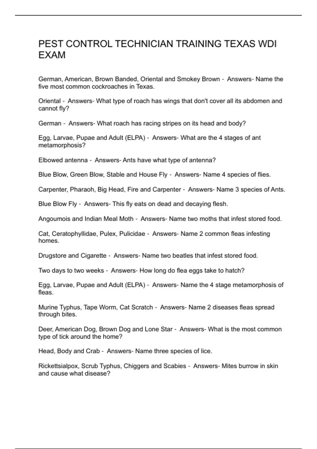 PEST CONTROL TECHNICIAN TRAINING TEXAS WDI EXAM