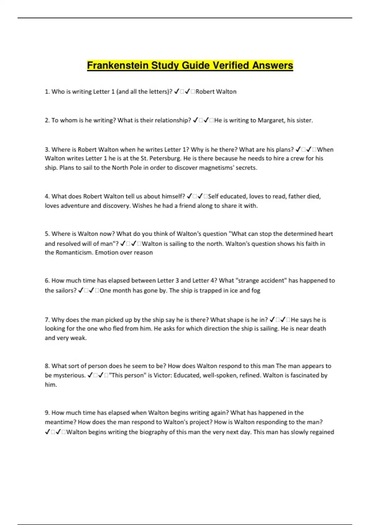 4. What does Robert Walton tell us about himself? ✔️✔️Self educated, loves to read, father died,