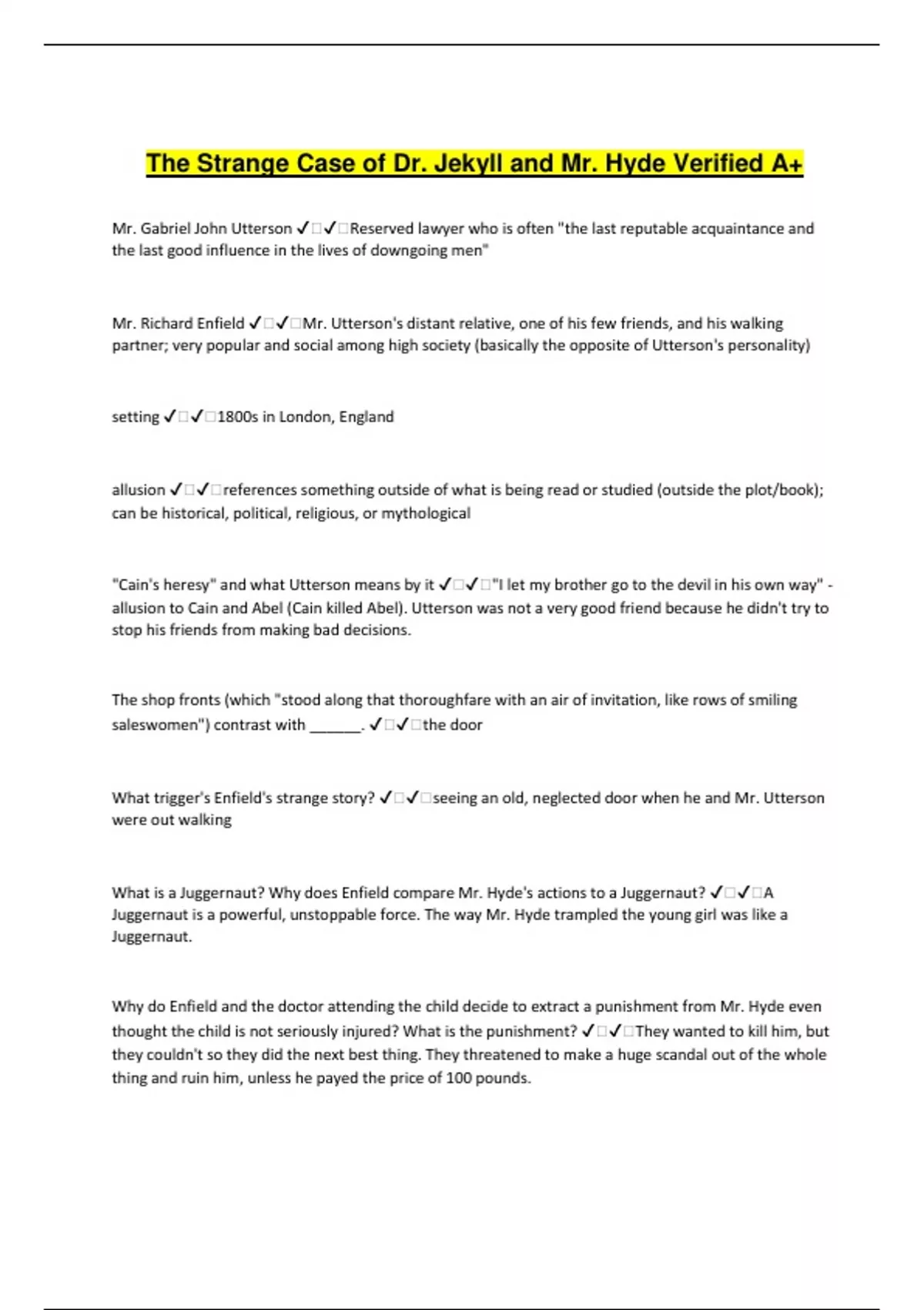 The Strange Case of Dr. Jekyll and Mr. Hyde Verified A+