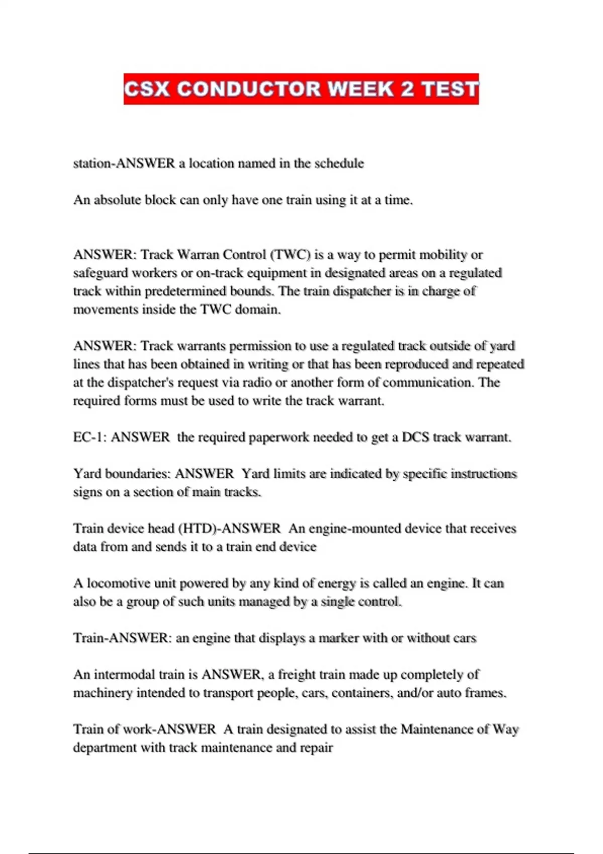 Train of work-ANSWER A train designated to assist the Maintenance of Way