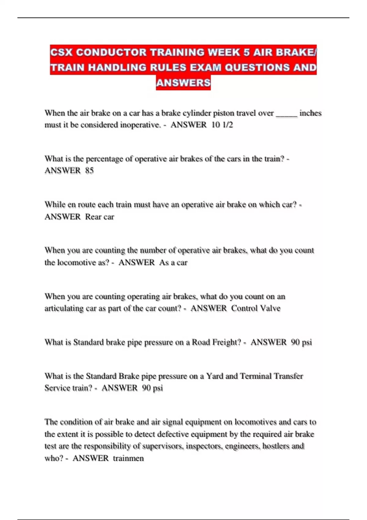Service train? - ANSWER 90 psi