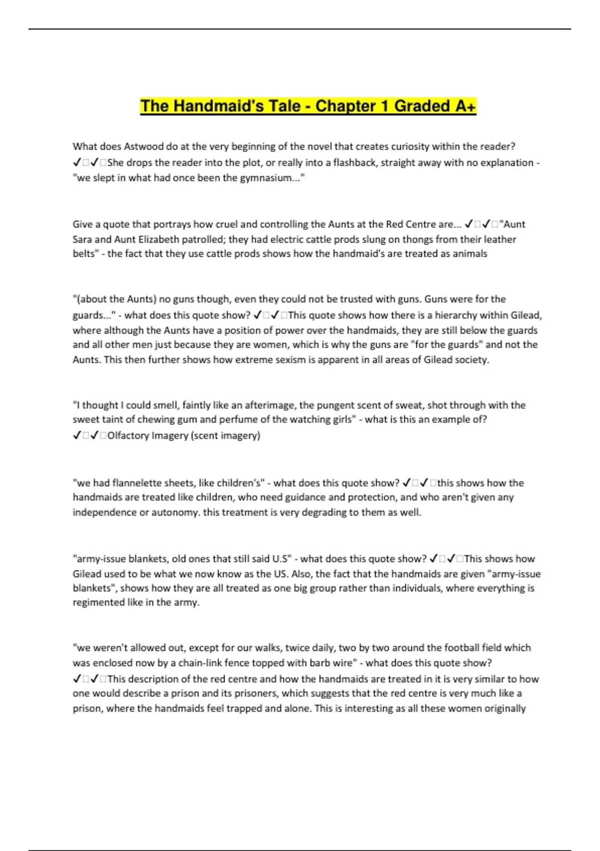 The Handmaid's Tale - Chapter 1 Graded A+