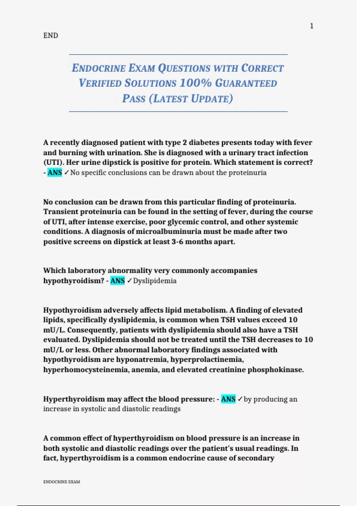 ENDOCRINE EXAM QUESTIONS WITH CORRECT