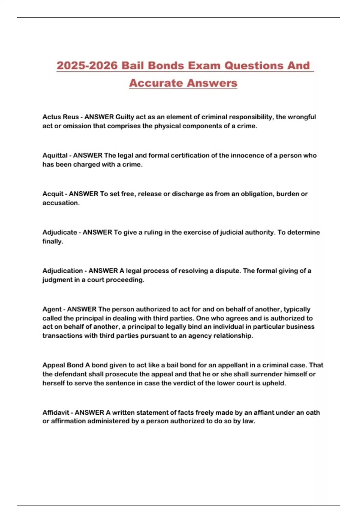 Aquittal - ANSWER The legal and formal certification of the innocence of a person who