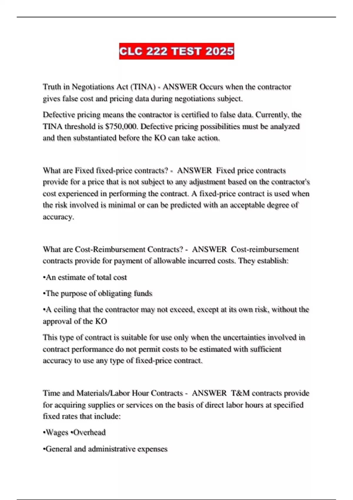 What are Cost-Reimbursement Contracts? - ANSWER Cost-reimbursement