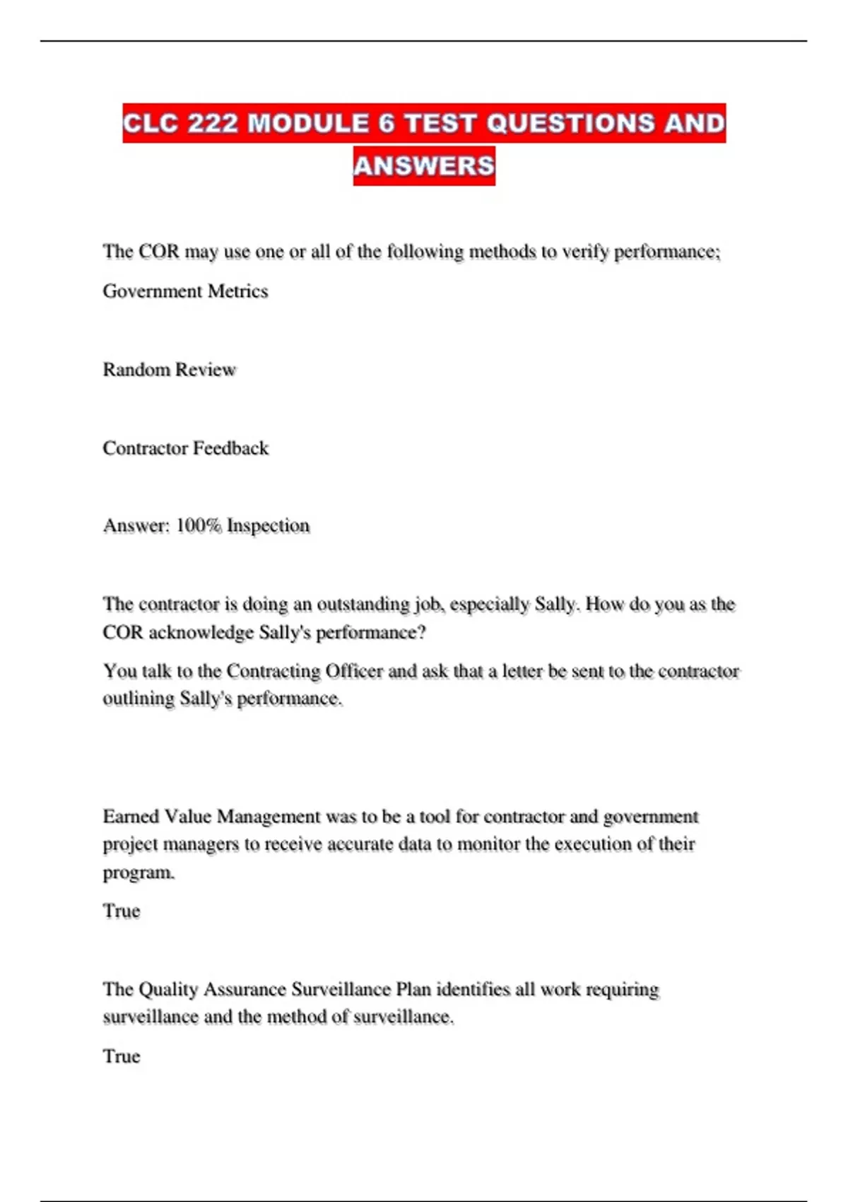 The Quality Assurance Surveillance Plan identifies all work requiring