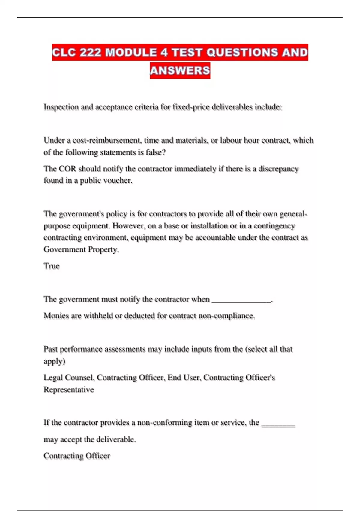 If the contractor provides a non-conforming item or service, the ________
