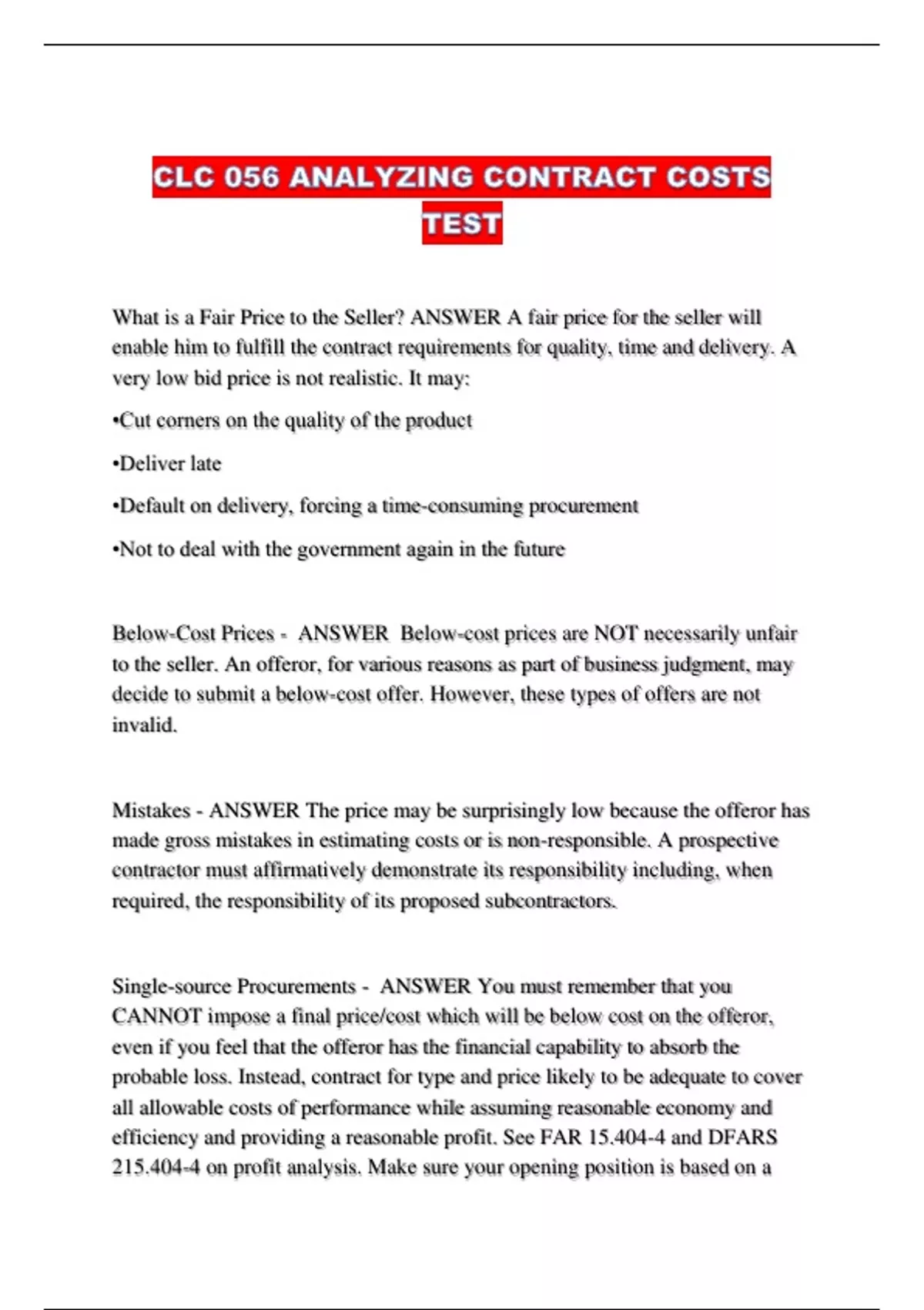 Single-source Procurements - ANSWER You must remember that you