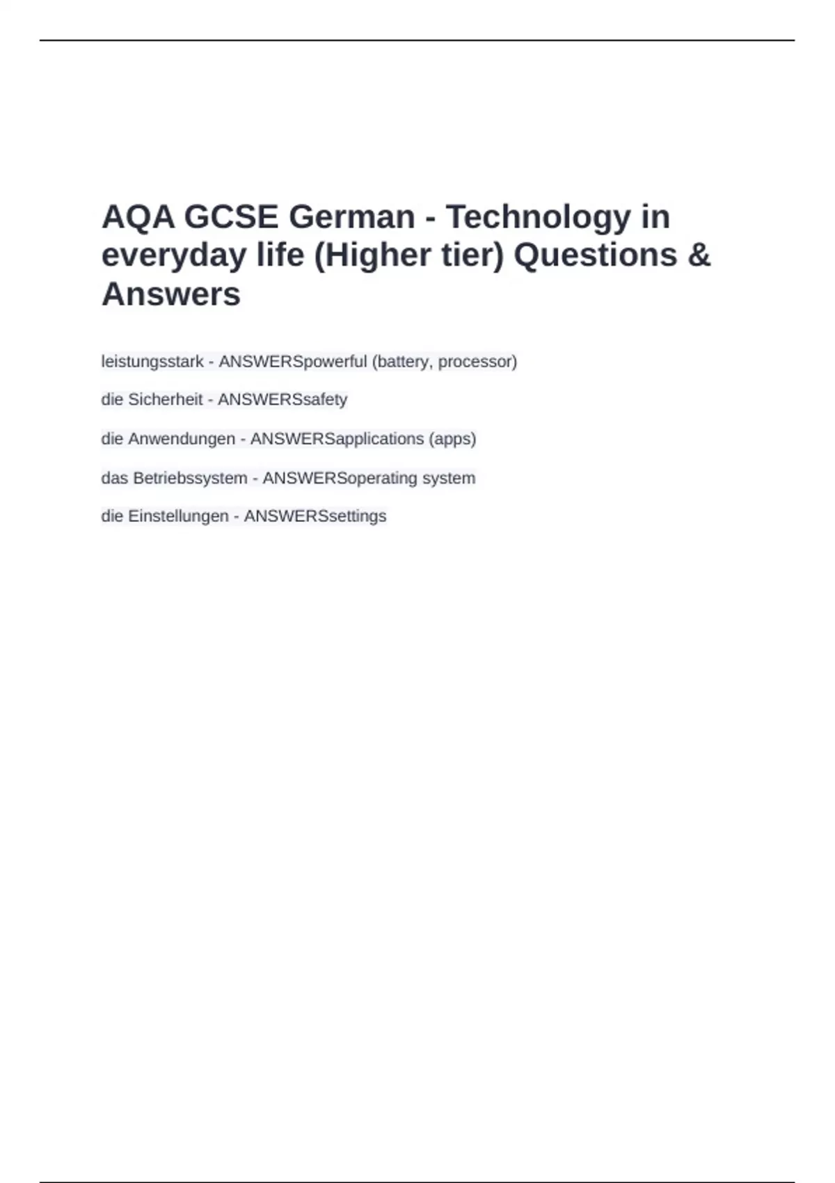 AQA GCSE German - Technology in everyday life (Higher tier) Questions & Answers