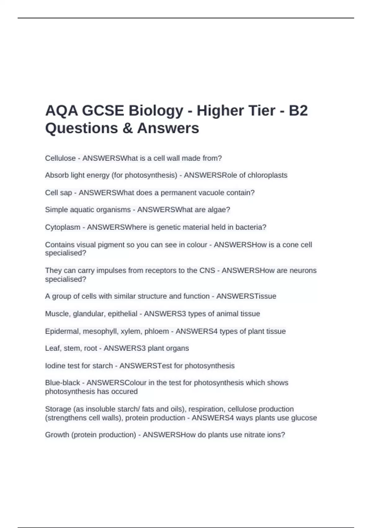 AQA GCSE Biology - Higher Tier - B2 Questions & Answers
