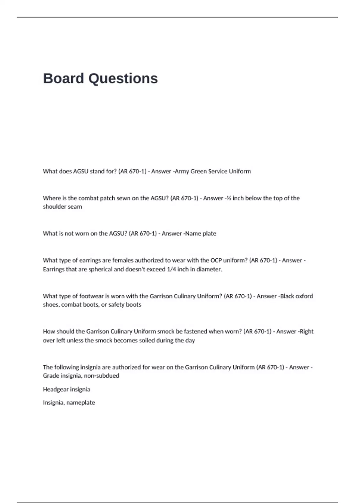 What does AGSU stand for? (AR 670-1) - Answer -Army Green Service Uniform