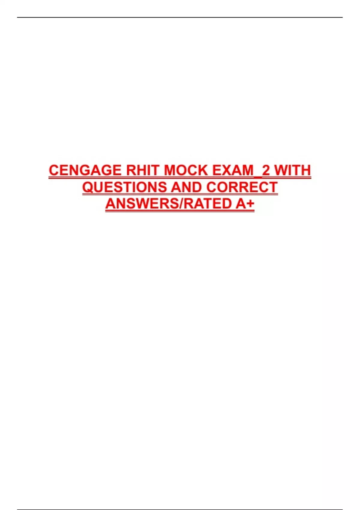 CENGAGE RHIT MOCK EXAM_2 WITH QUESTIONS AND CORRECT ANSWERS/RATED A+