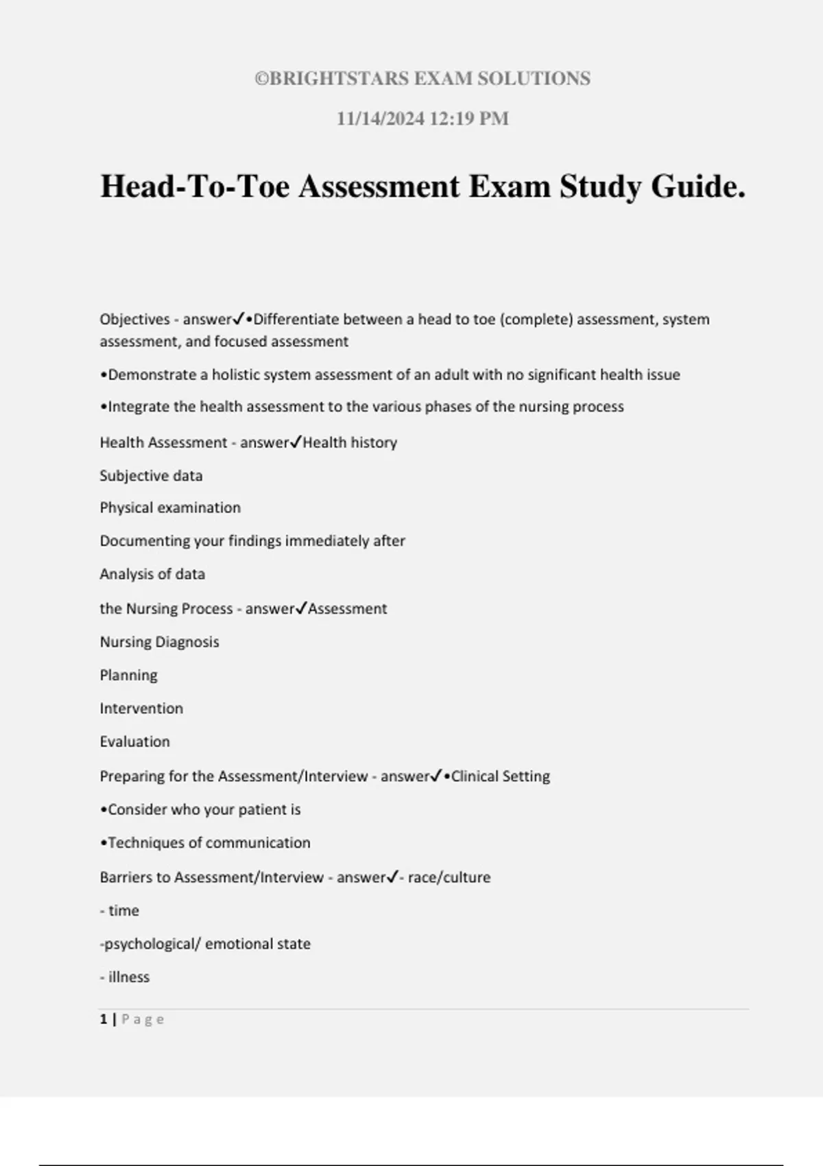 Objectives - answer✔•Differentiate between a head to toe (complete) assessment, system