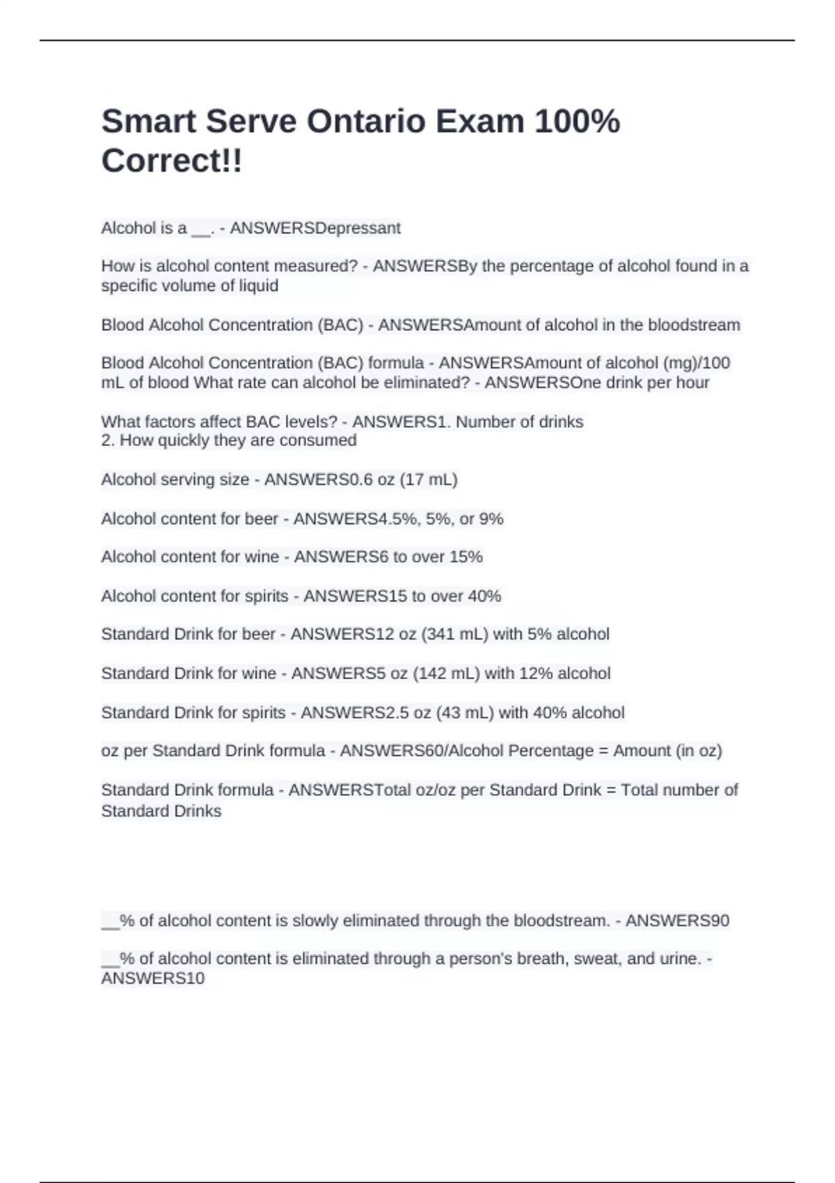 Standard Drink for spirits - ANSWERS2.5 oz (43 mL) with 40% alcohol