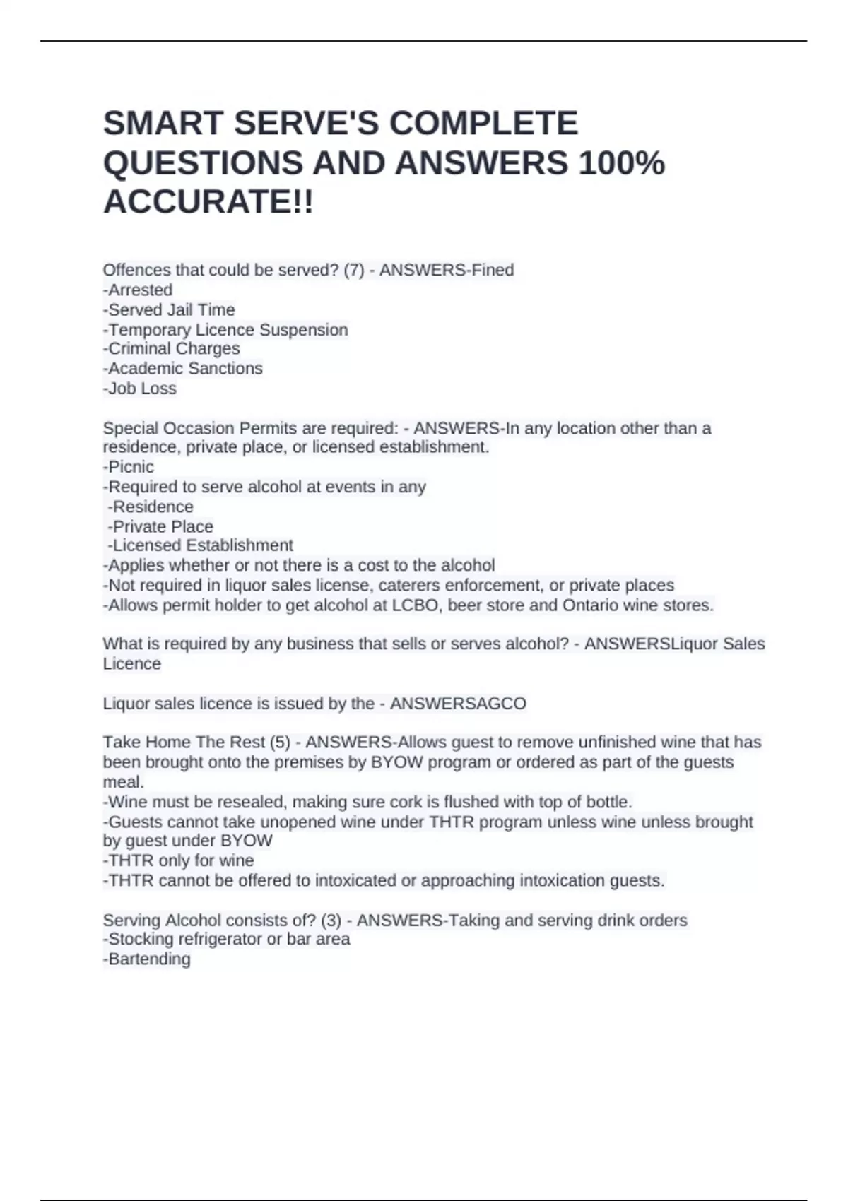 Serving Alcohol consists of? (3) - ANSWERS-Taking and serving drink orders