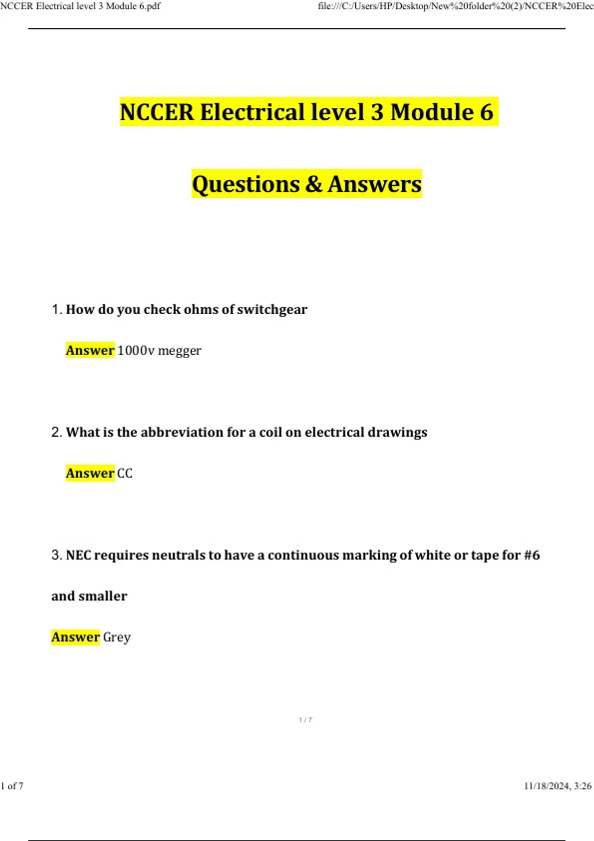 NCCER Electrical level 3 Module 6 Exam 2024 Questions and Answers (Latest Update) Verified Answered ,Graded A+.