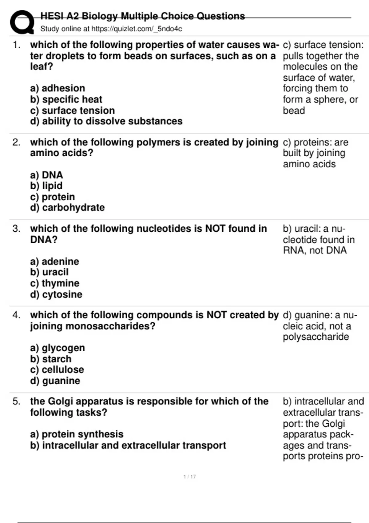 , HESI A2 Biology Multiple Choice Questions