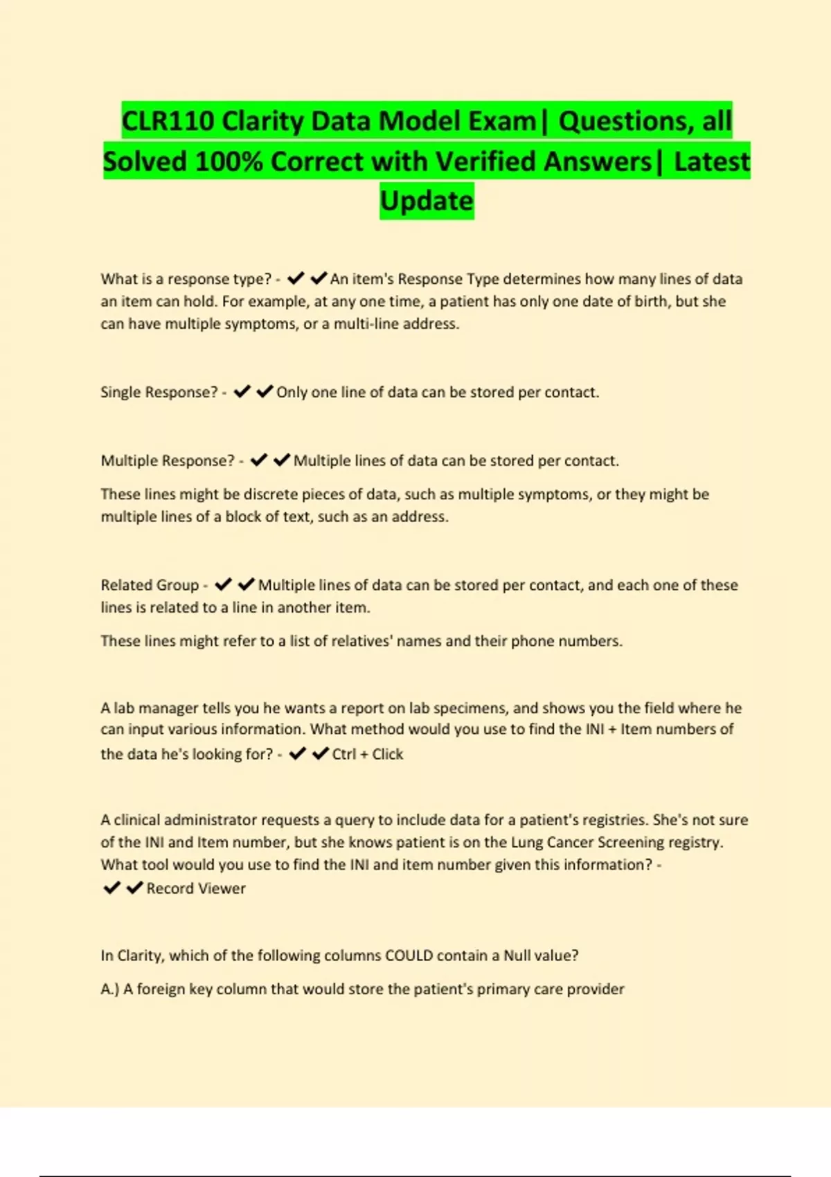 CLR110 Clarity Data Model Exam| Questions, all