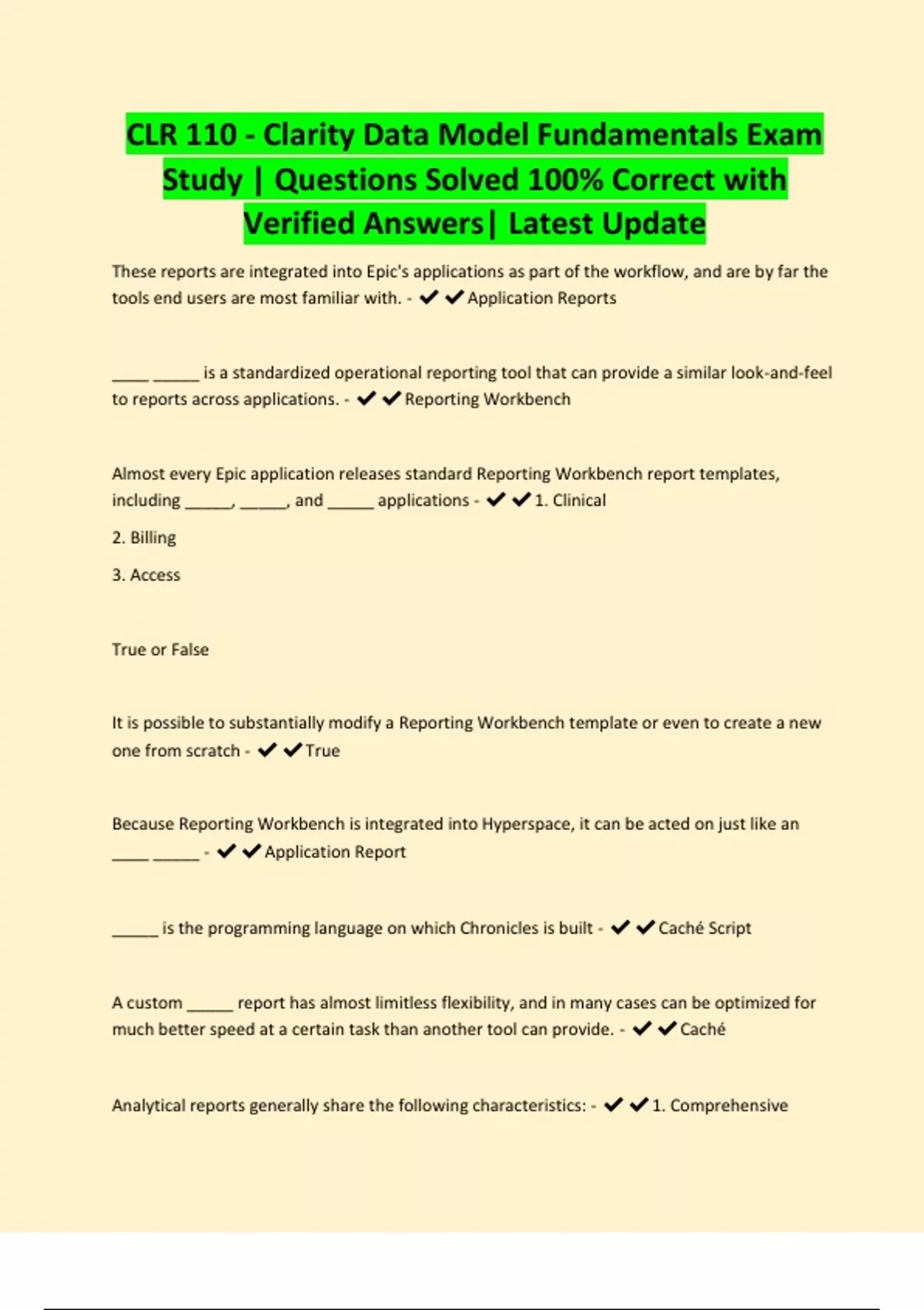 CLR 110 - Clarity Data Model Fundamentals Exam Study | Questions Solved 100% Correct with Verified Answers| Latest Update