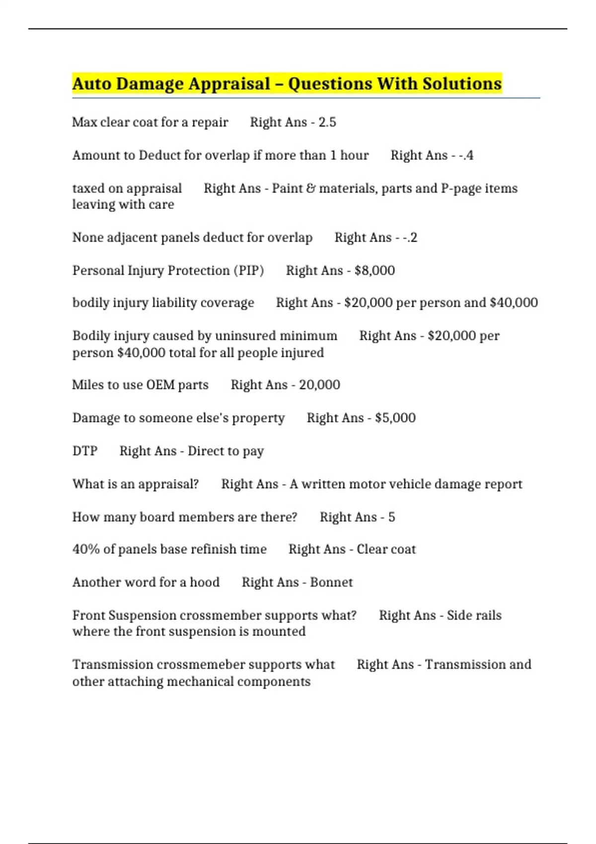 What is an appraisal? Right Ans - A written motor vehicle damage report