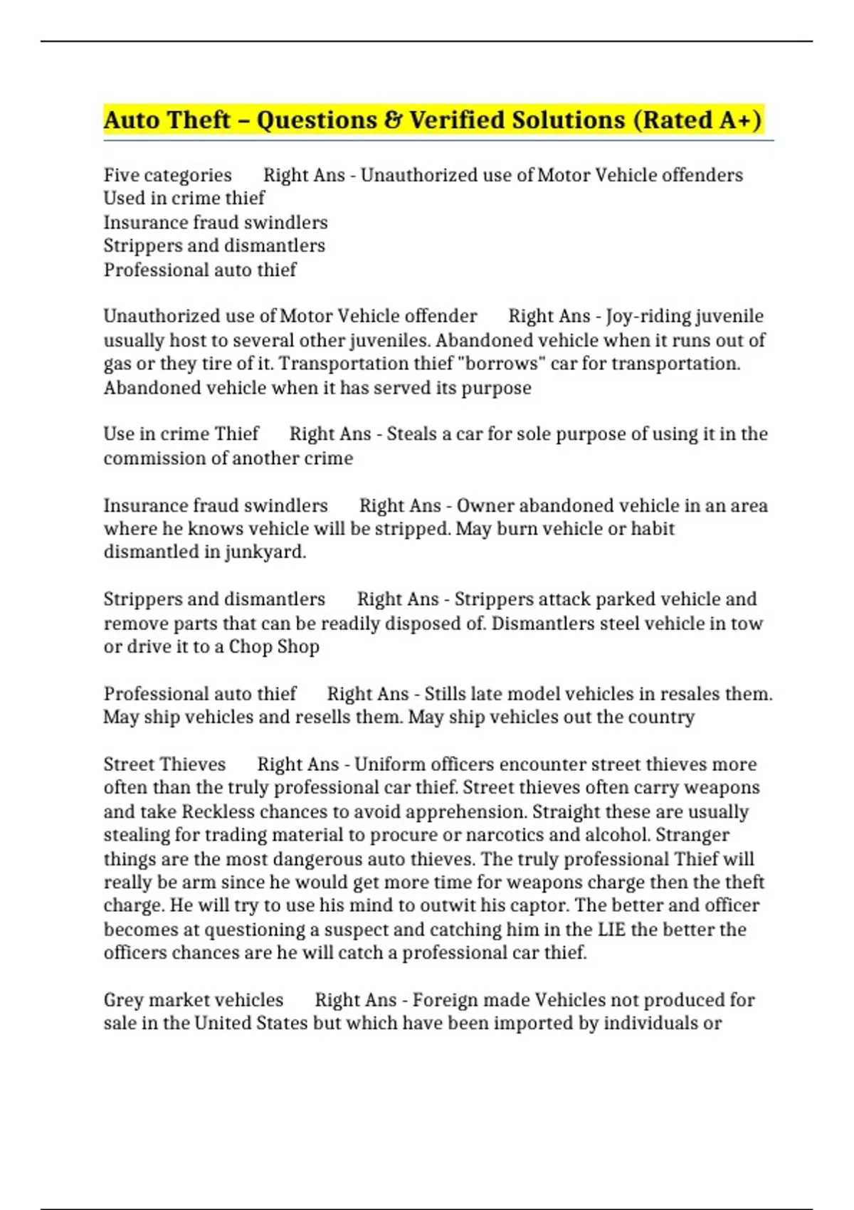 Auto Theft – Questions & Verified Solutions (Rated A+)