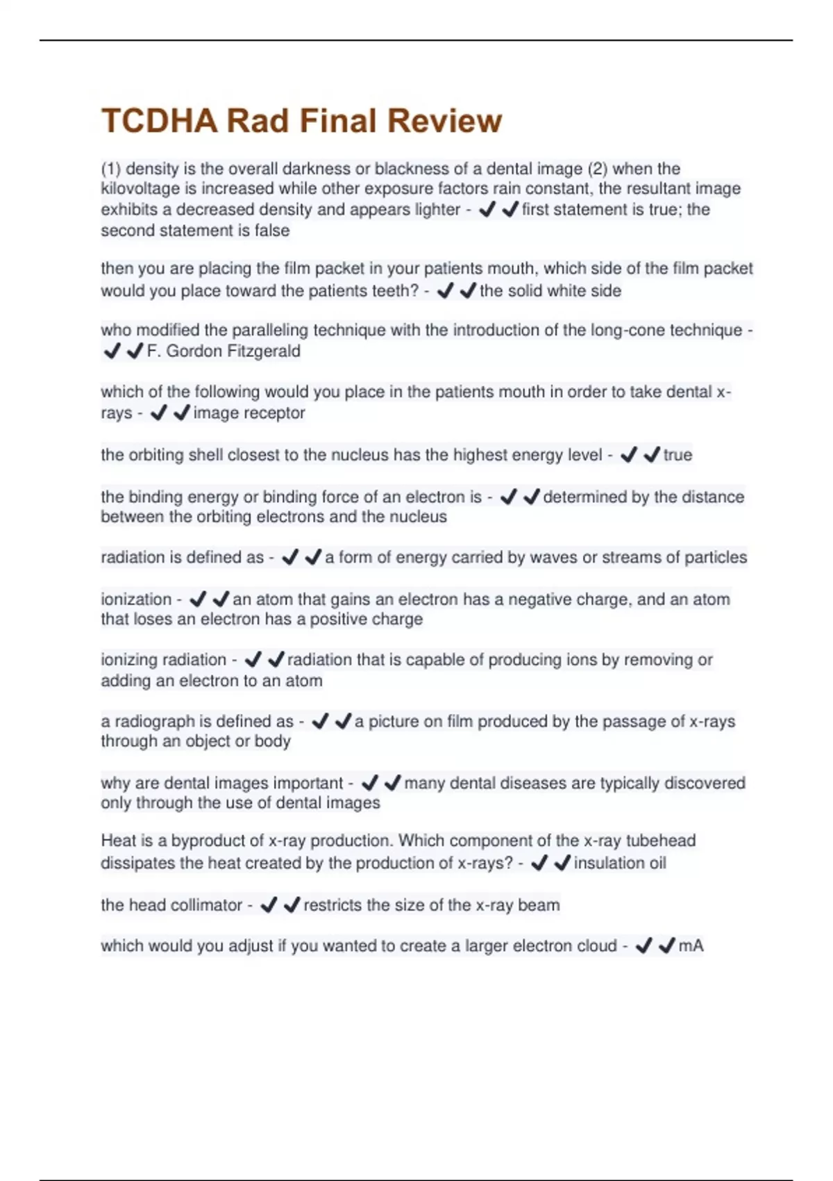(1) density is the overall darkness or blackness of a dental image (2) when the