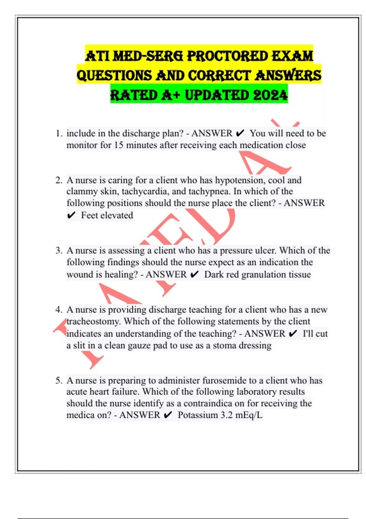 medica on? - ANSWER ✔ Potassium 3.2 mEq/L