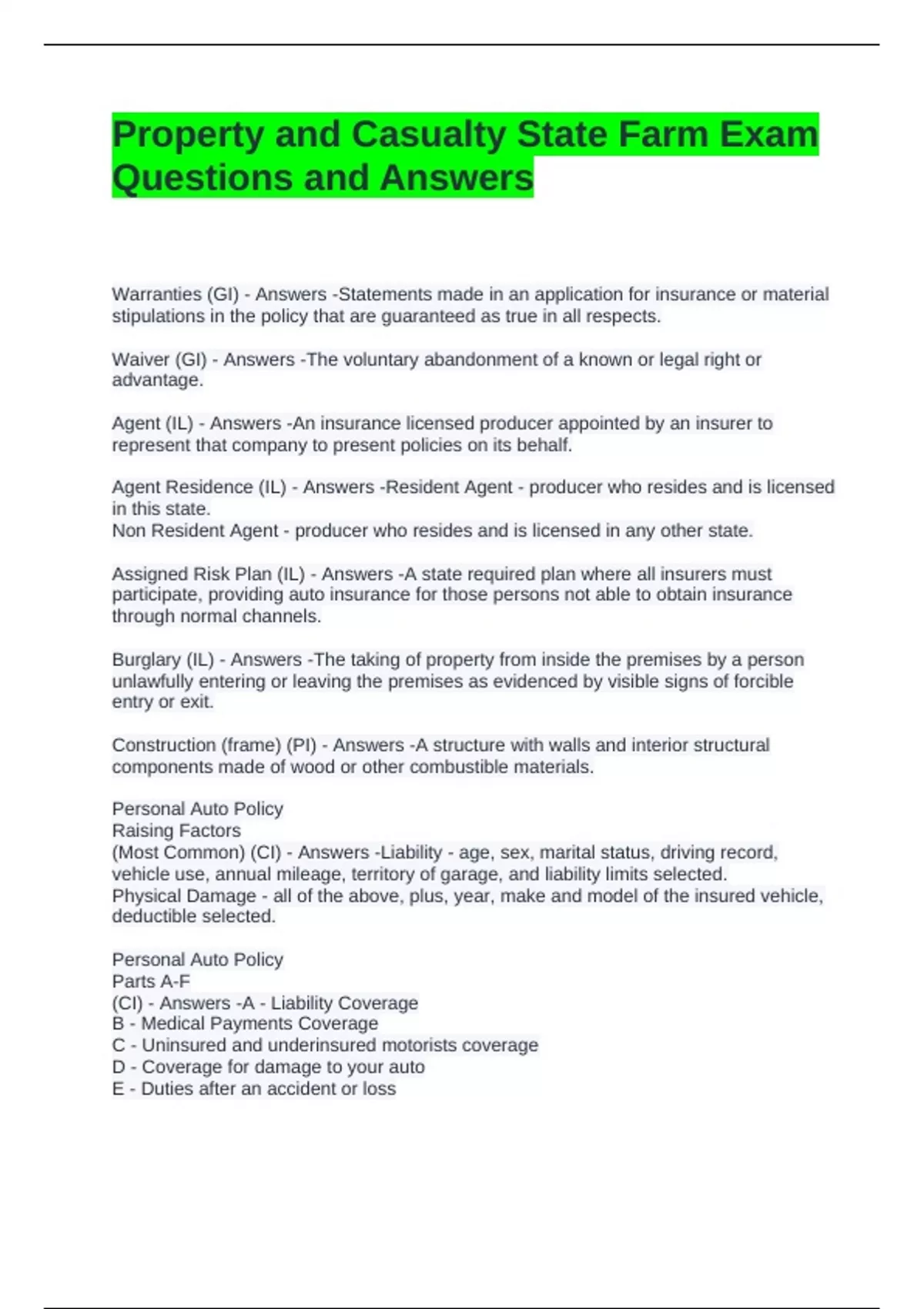 (CI) - Answers -A - Liability Coverage