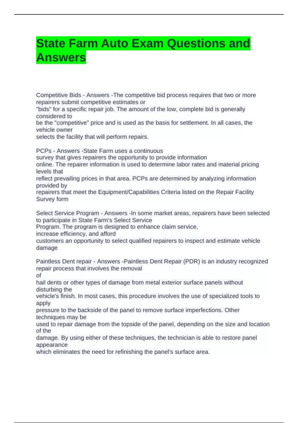 State Farm Auto Exam Questions and