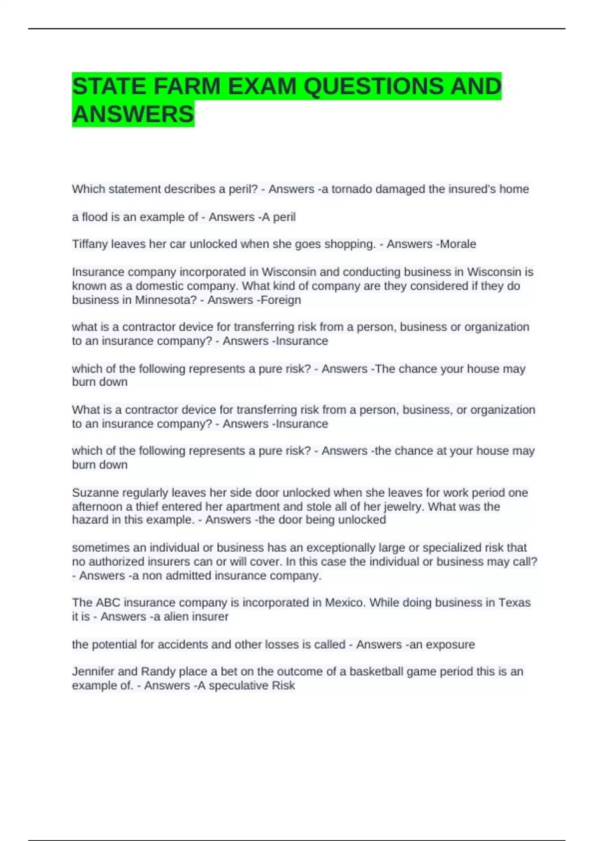 STATE FARM EXAM QUESTIONS AND ANSWERS