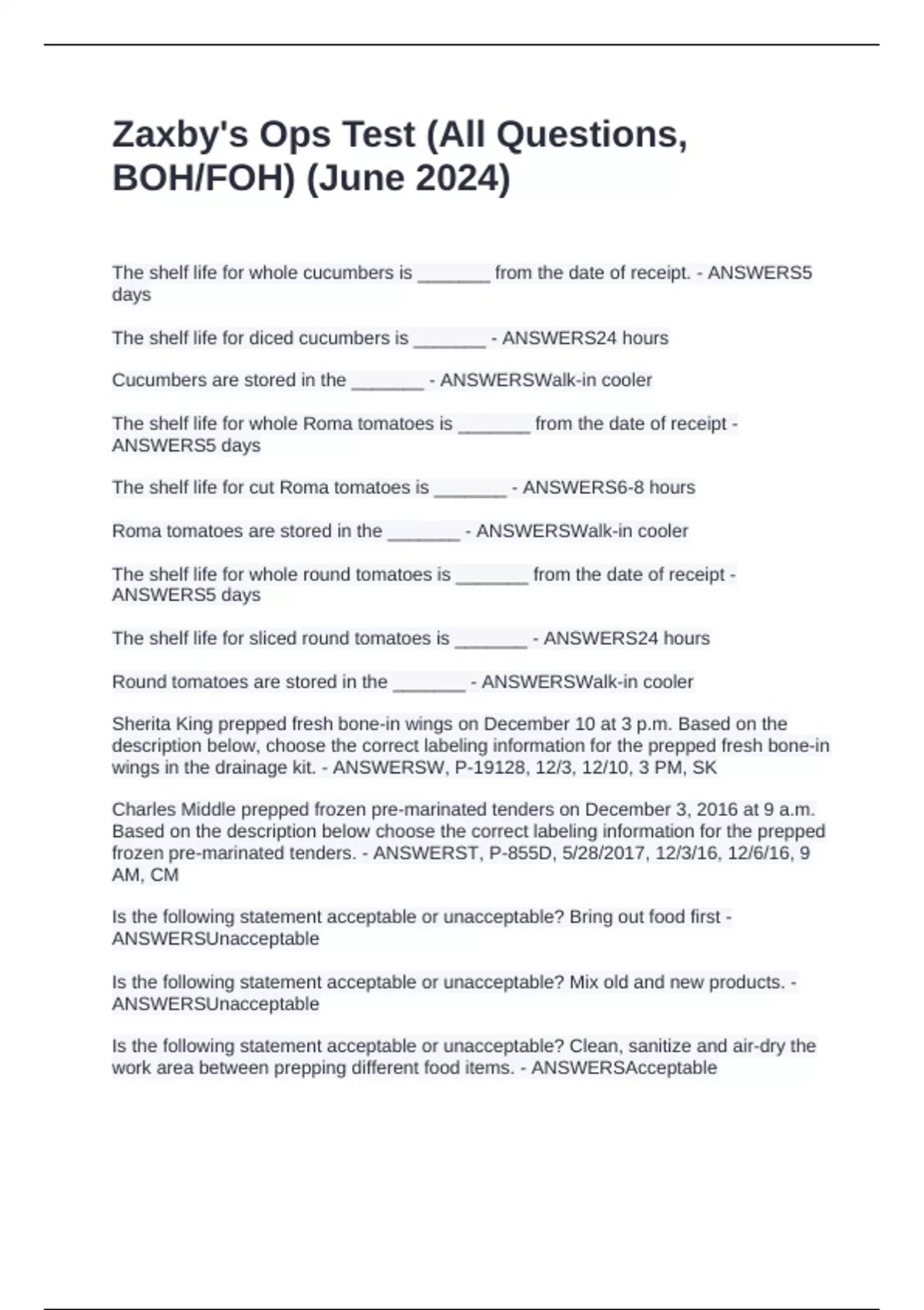 Zaxby's Ops Test (All Questions, BOH/FOH) (June 2024Zaxby's Ops Test (All Questions, BOH/FOH) (June 2024Zaxby's Ops Test (All Questions, BOH/FOH) (June 2024Zaxby's Ops Test (All Questions, BOH/FOH) (June 2024Zaxby's Ops Test (All Questions, BOH/FOH) (June 2024Zaxby's Ops Test (All Questions, BOH/FOH) (June 2024