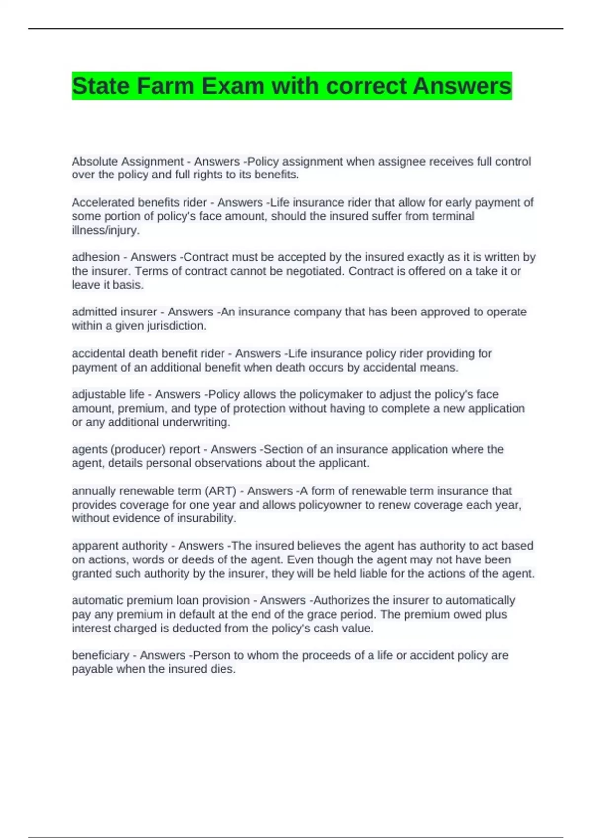 Accelerated benefits rider - Answers -Life insurance rider that allow for early payment of
