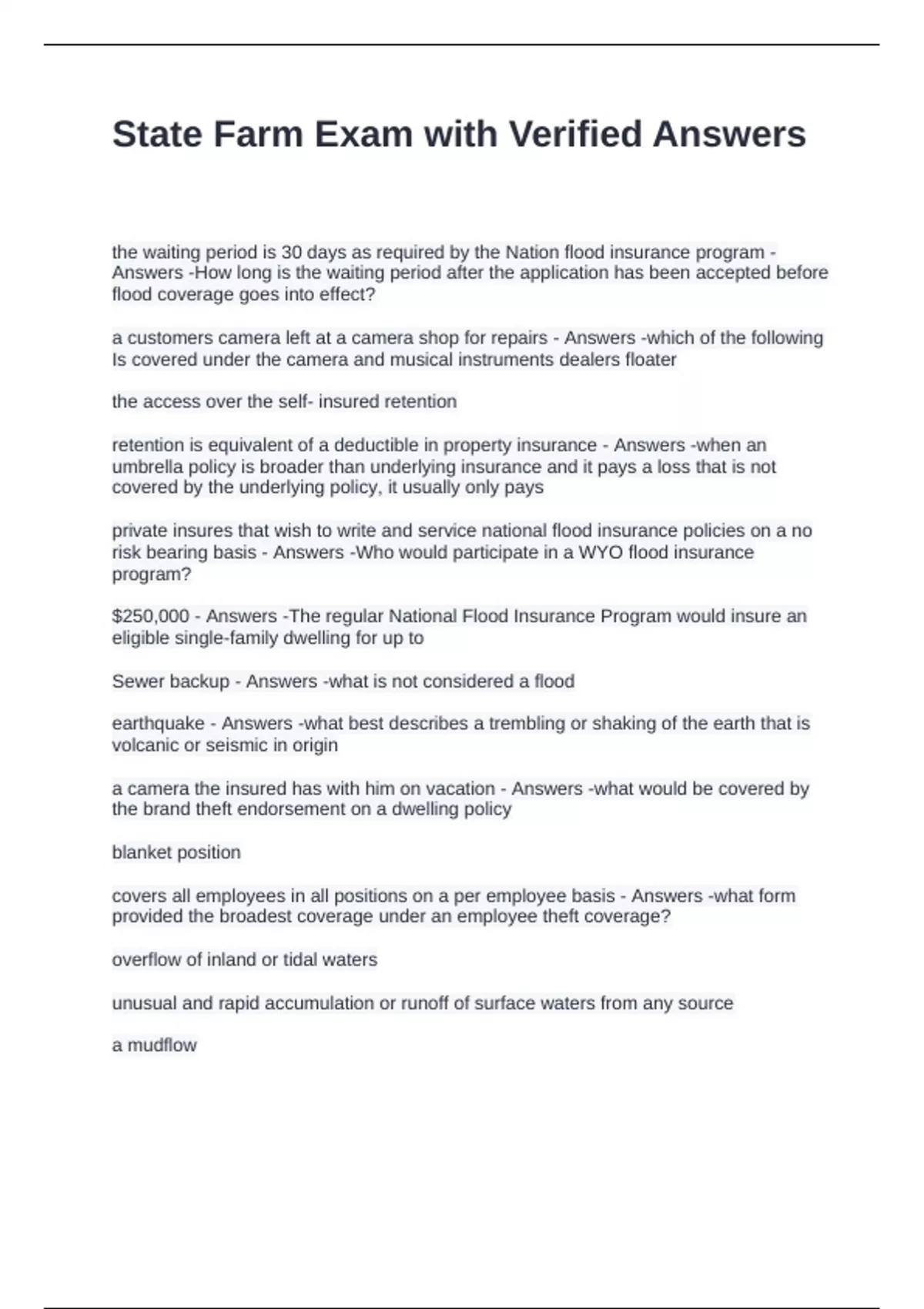 State Farm Exam with Verified Answers