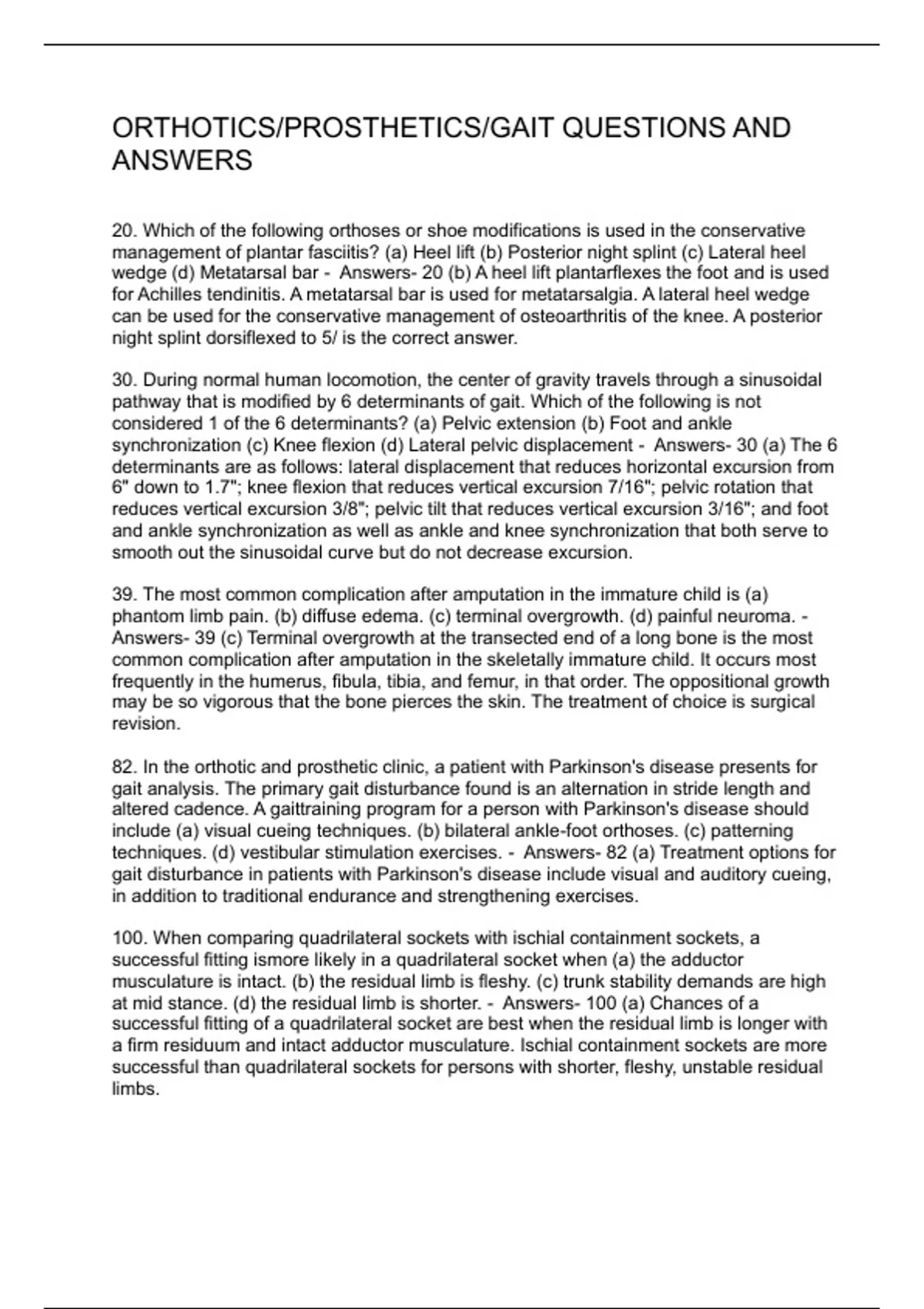 ORTHOTICS/PROSTHETICS/GAIT QUESTIONS AND ANSWERS
