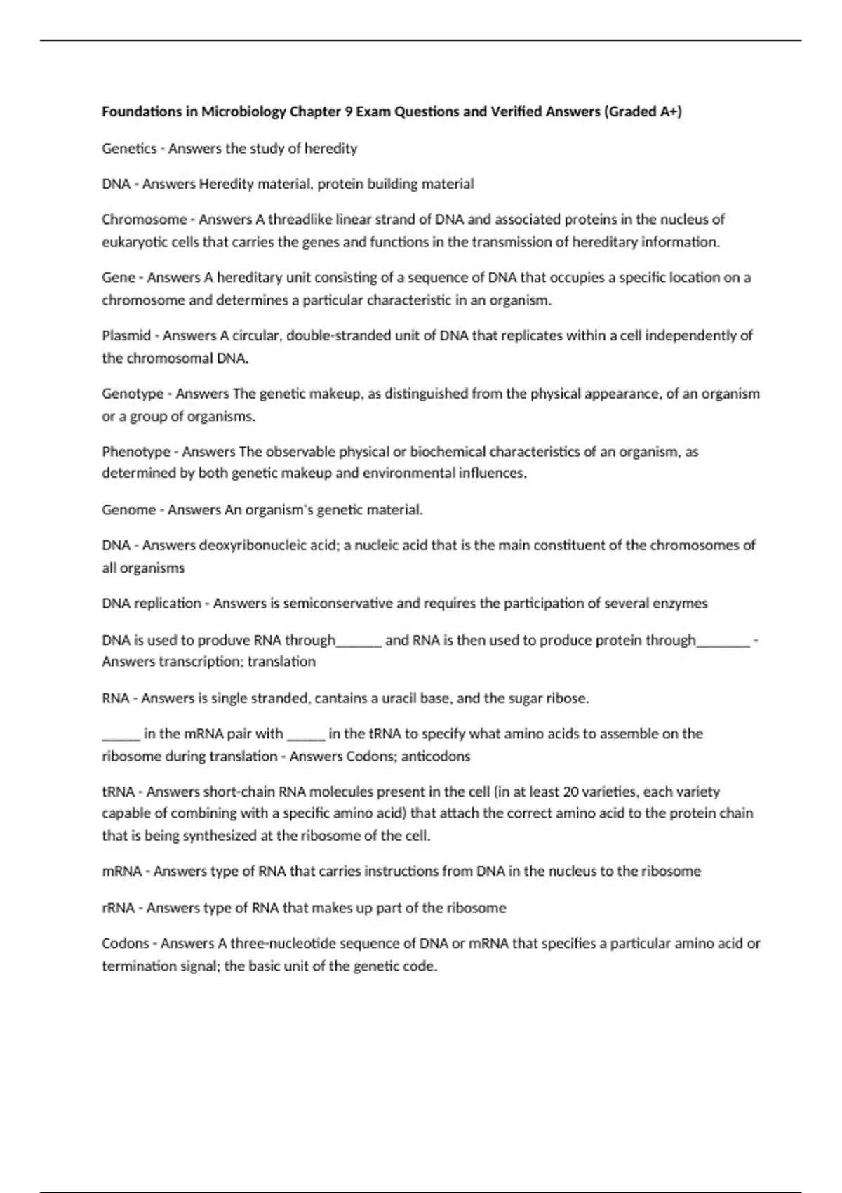 Genome - Answers An organism's genetic material.