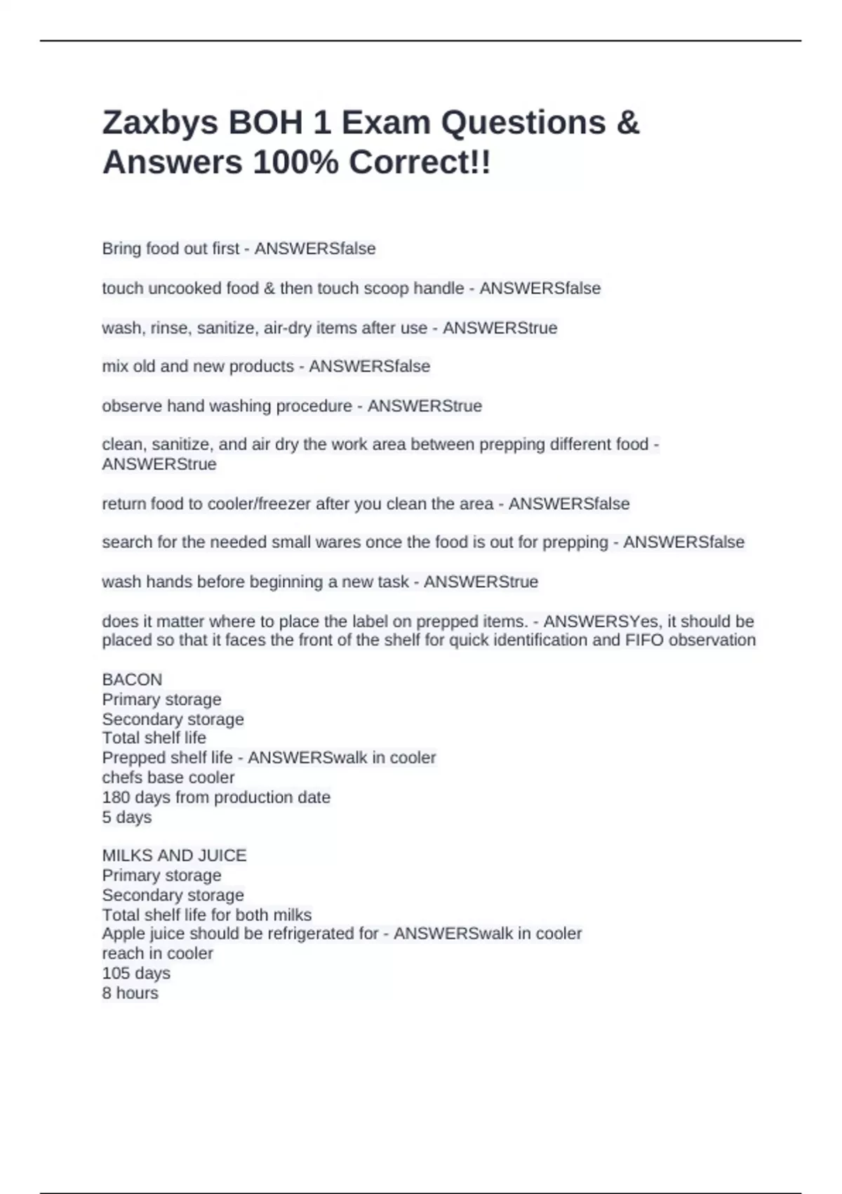 Prepped shelf life - ANSWERSwalk in cooler