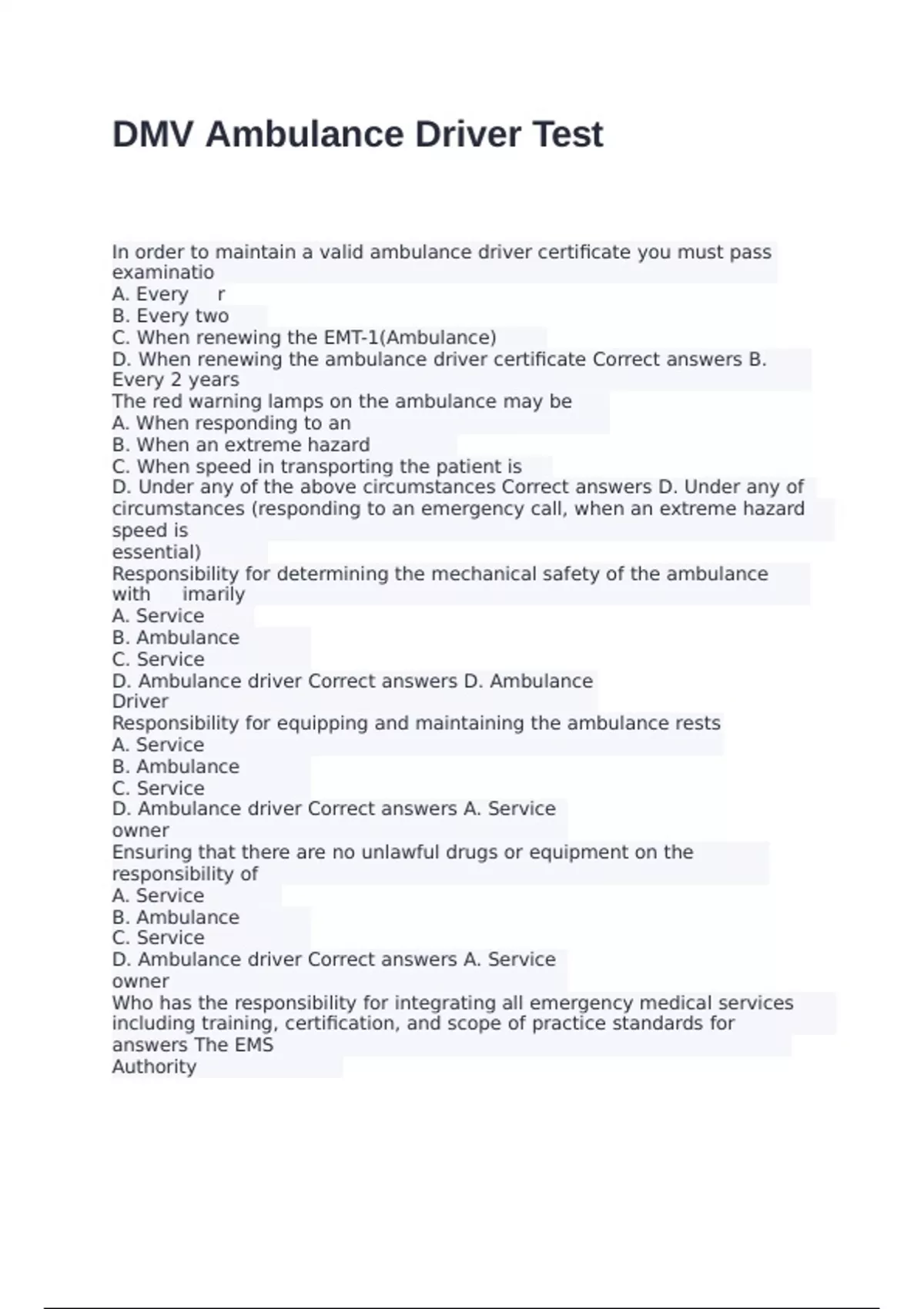 D. Ambulance driver Correct answers D. Ambulance