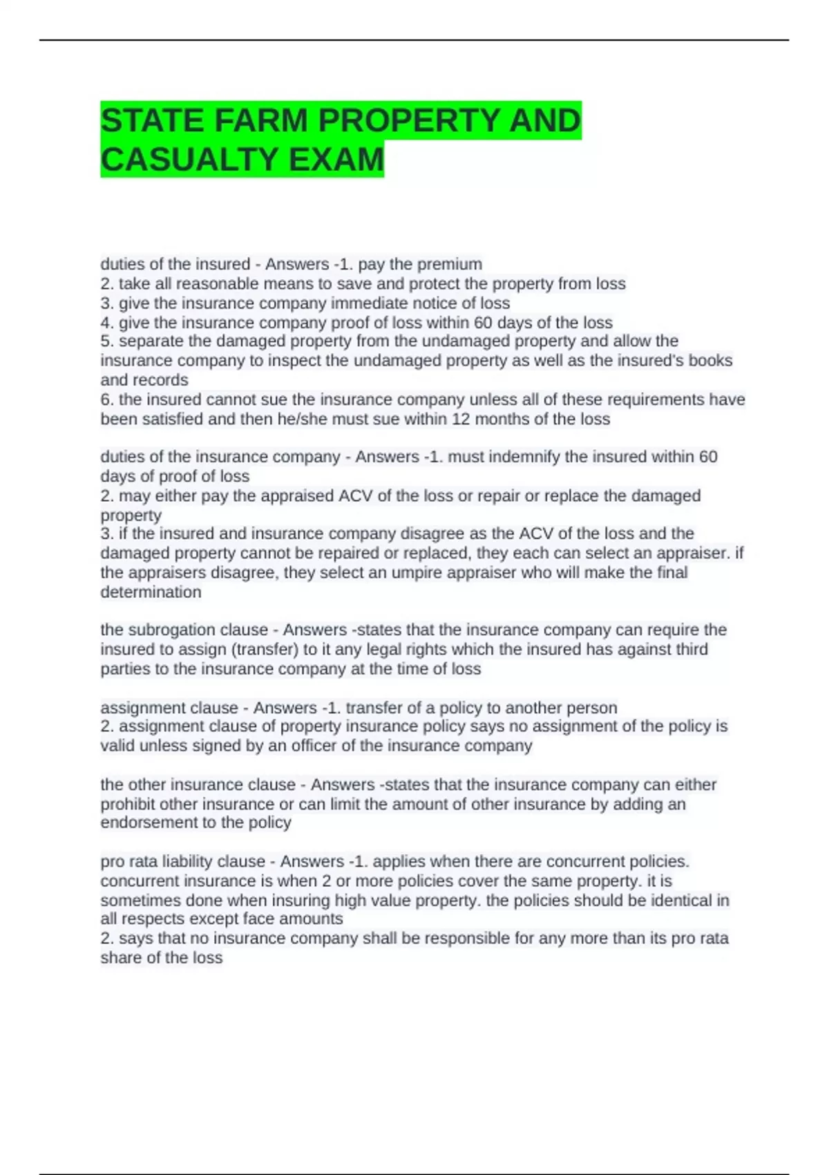 STATE FARM PROPERTY AND CASUALTY EXAM QUETIONS AND ANSWERS