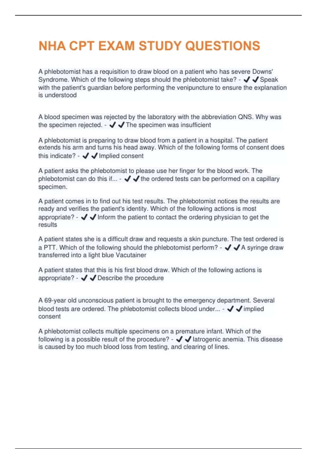NHA CPT EXAM STUDY QUESTIONS