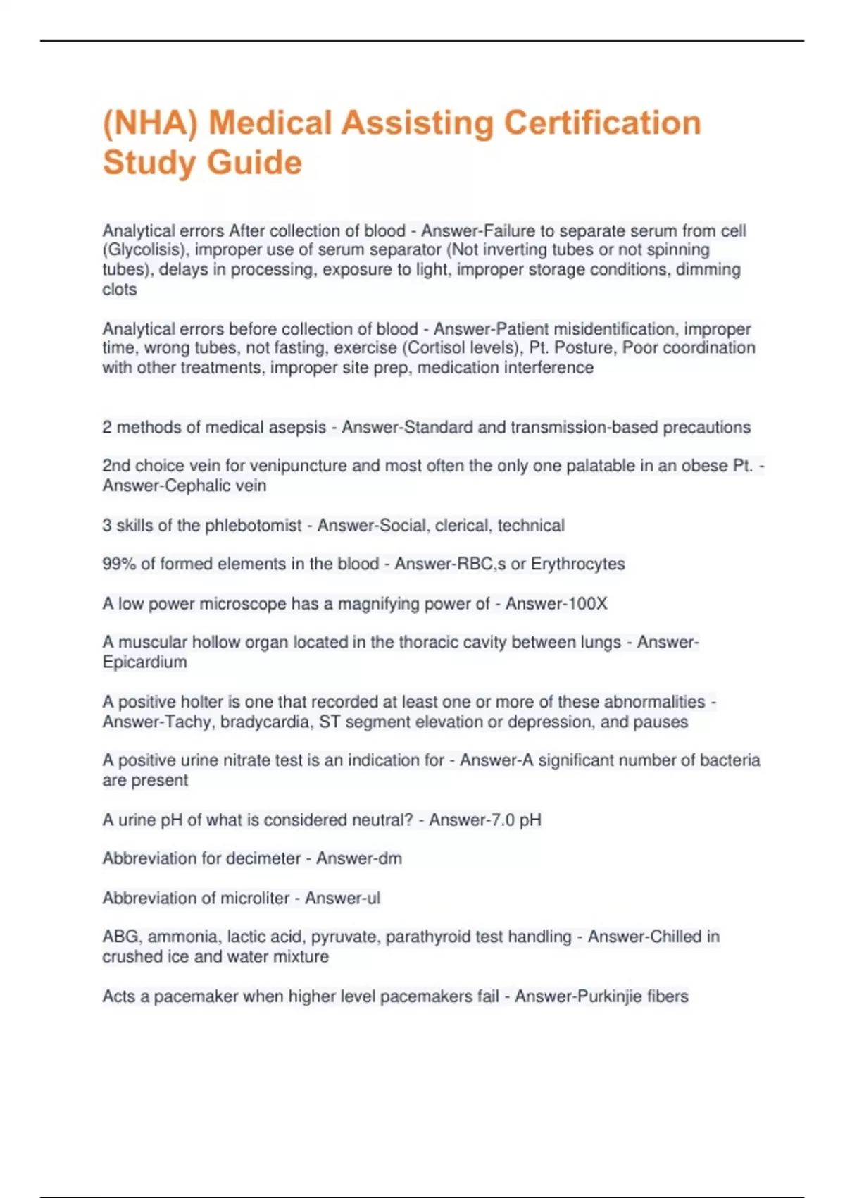 Analytical errors After collection of blood - Answer-Failure to separate serum from cell