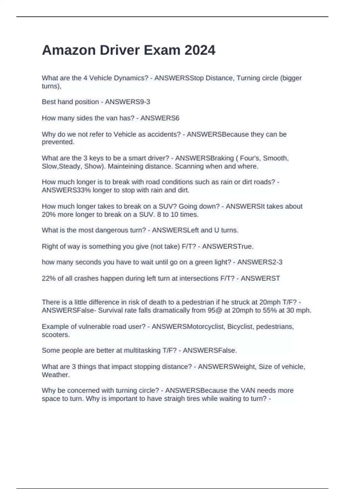 What are 3 things that impact stopping distance? - ANSWERSWeight, Size of vehicle,