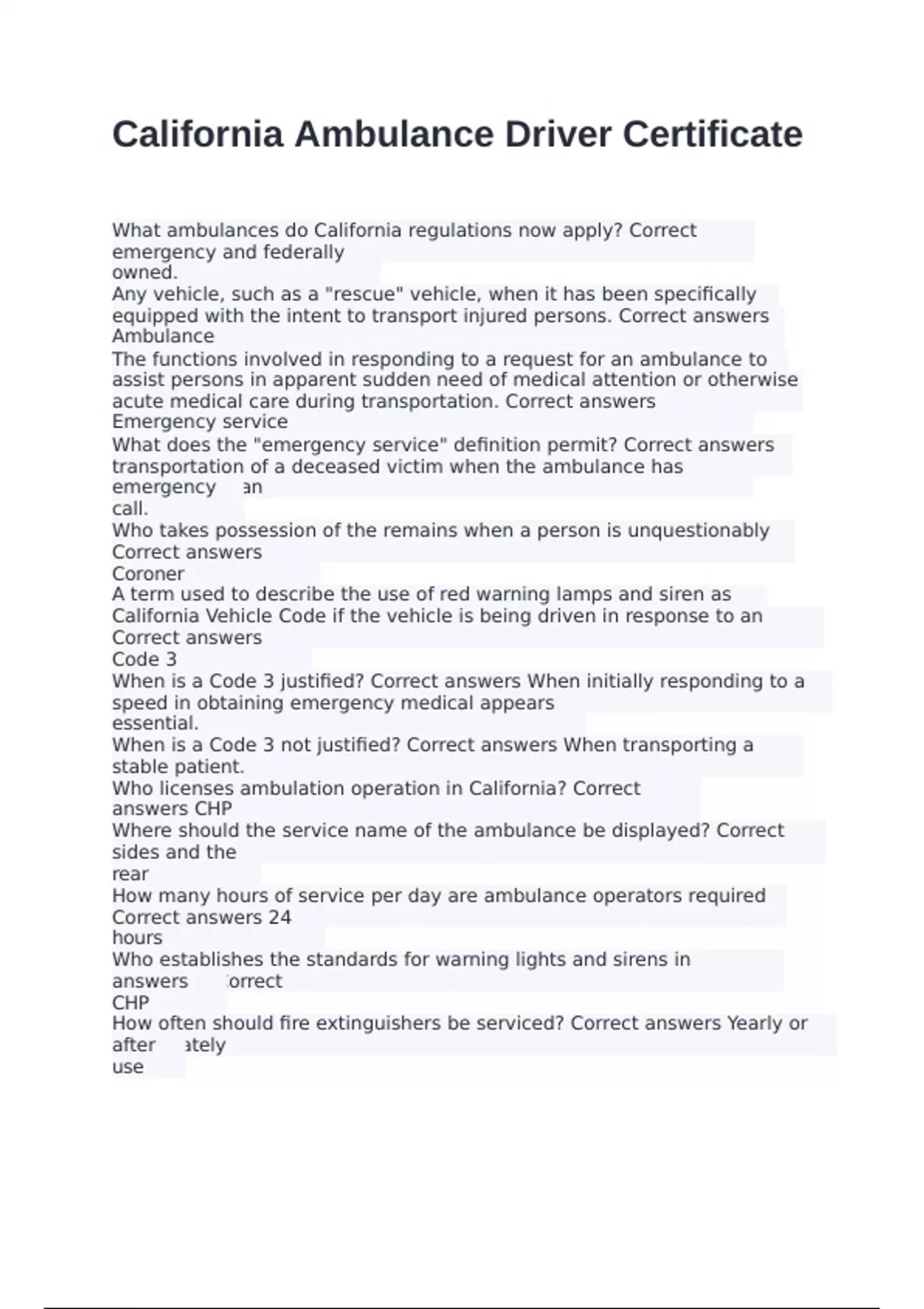 California Ambulance Driver Certificate exam with correct answers GRADED A+ 2024