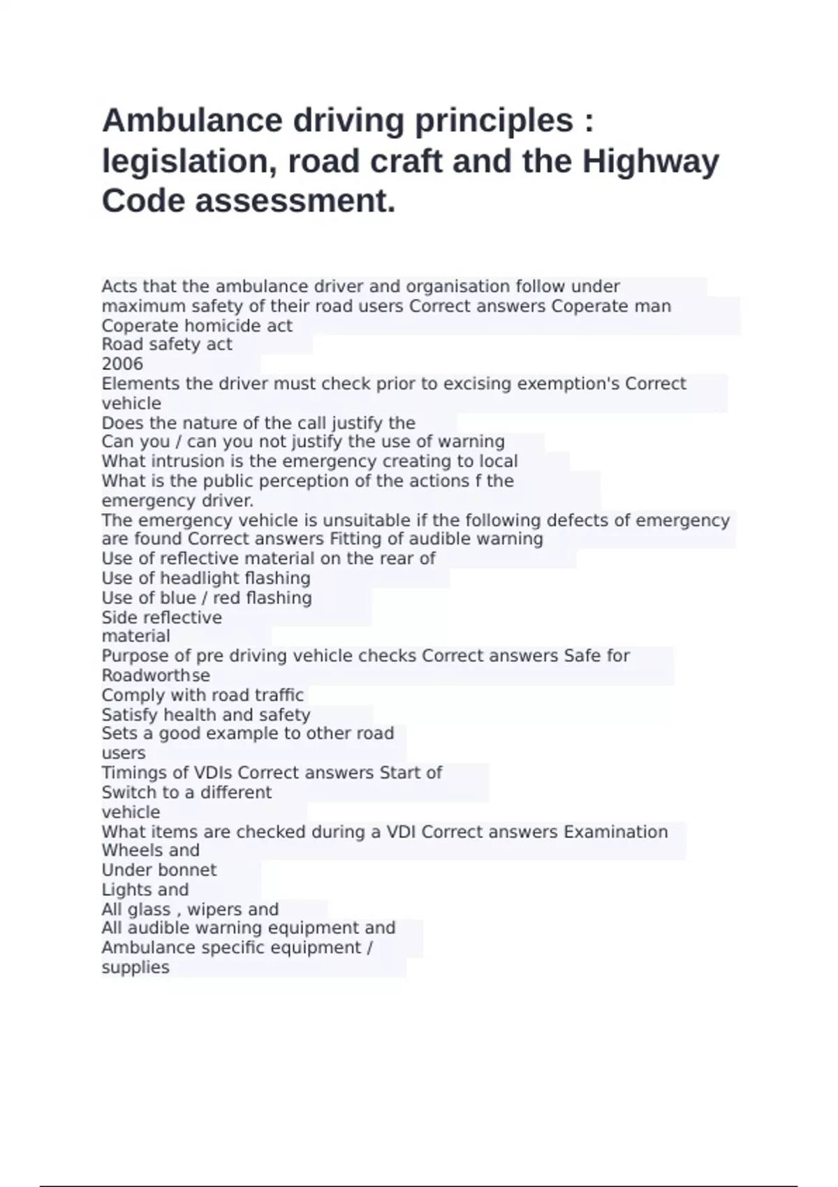safety of their road users Correct answers Coperate man